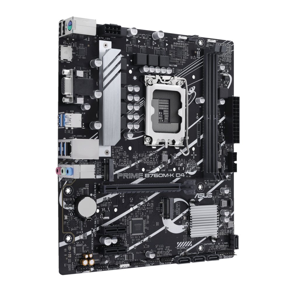 De ASUS PRIME B760M-K D4 is een moederbord met LGA 1700-socket en ondersteunt Intel Core-processors. Het beschikt over 4 DDR4-sloten voor een maximale geheugencapaciteit van 128 GB. Het ontwerp is compact en heeft een Micro-ATX-formaat, wat het ideaal maakt voor kleinere systemen. Het biedt aansluitingen voor HDMI- en VGA-beeldschermen. De ASUS PRIME B760M-K D4 is een betaalbare keuze voor een desktop-oplossing en biedt uitstekende prestaties en betrouwbaarheid. Het ondersteunt ook diverse uitbreidingsmogelijkheden, zoals SATA- en M.2-opslag, en heeft diverse verbindingsmogelijkheden, waaronder USB 3.2 en LAN.
